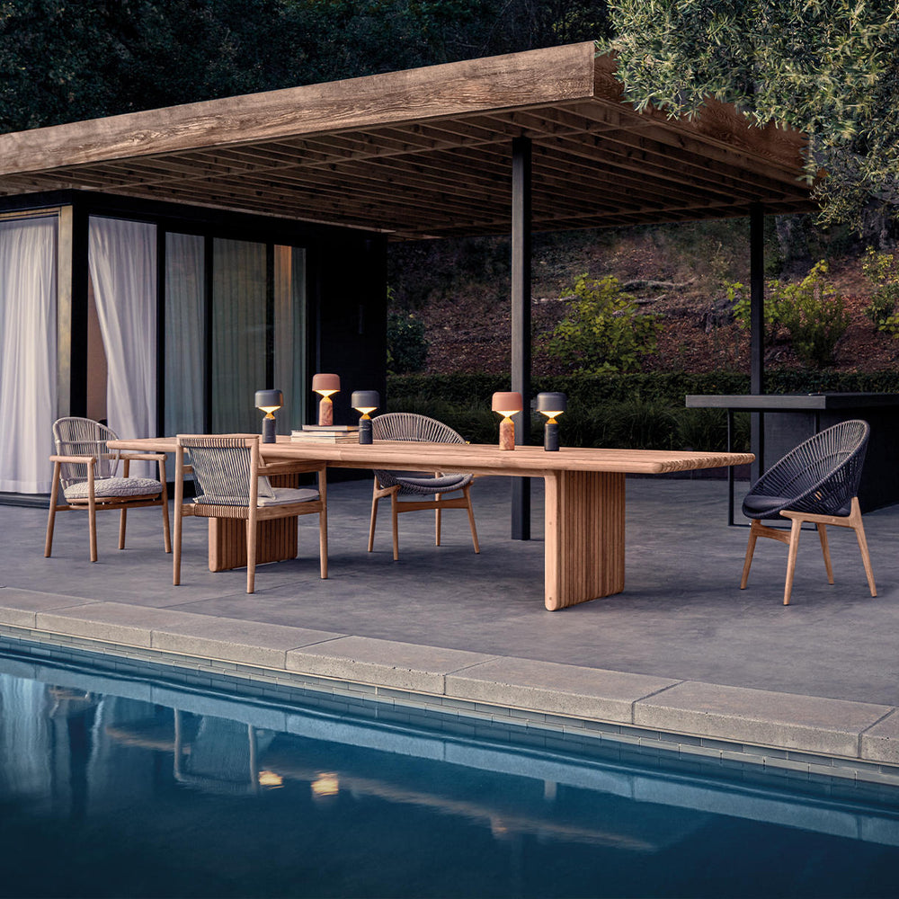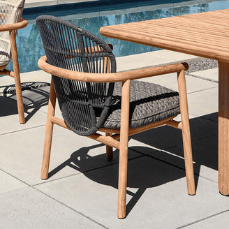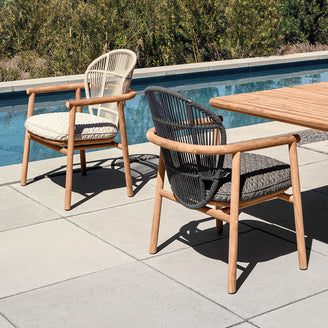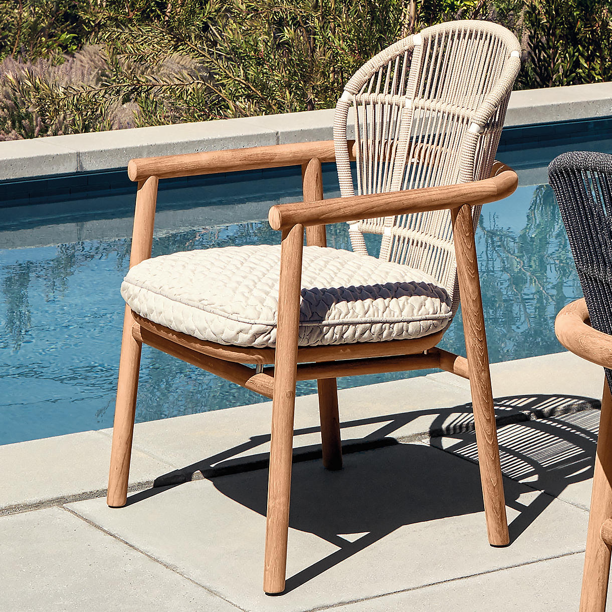 Fern combines plantation teak with a soft finish outdoor rope, so its enveloping, woven back rest both protects and provides the comfort.