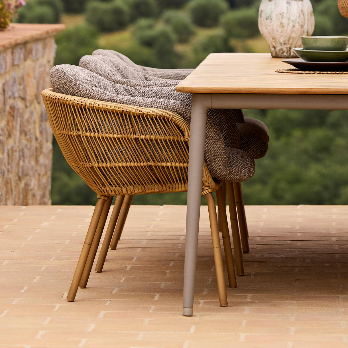 With its curved, nest-like silhouette, Stay offers a cosy retreat, whether you're unwinding with a book or gathering for outdoor dinners. The plush cushions feature QuickDry & Airflow technology for all-weather comfort, while sleek powder-coated aluminium legs add a modern touch. Plus, it’s stackable for easy storage.