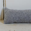 In a traditional herringbone style design with grey and cream colours in the weave.