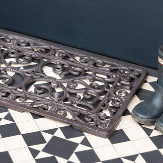This classic Victorian style doormat in cast iron makes a grand statement at your entrance, as well as being a practical door mat for scraping shoes and wellies on.