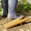 Standing firmly with one foot on the lower half of the boot jack, place the other heel into the V of the jack, lift your foot upwards and allow the jack to pull the boot off. Repeat for the other foot.