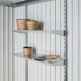 The equipment locker is a more slim line storage unit that is still able to offer a huge amount of storage options for whatever you may need to hide away. The support rails, shelves, and tool hangers that you see in this idea come with the Equipment Locker as standard. Use a ground screw foundation when installing on soft or uneven ground. Check out further accessories below, where you can customise your Equipment Locker even further.