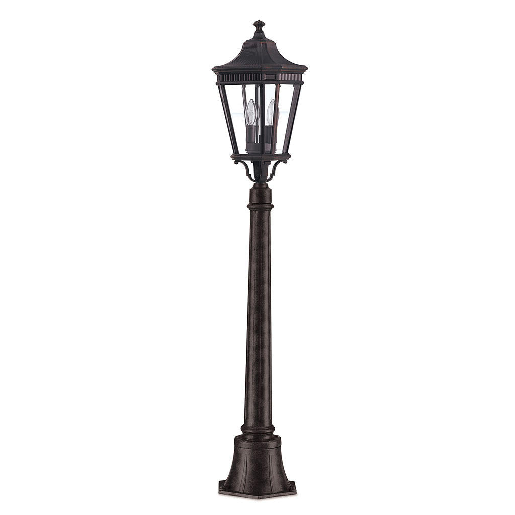 The classic styling of the Cotswold Lane collection features moulding at the top of each panel of clear bevelled glass. This adds to the more formal, traditional style of this antique gas lantern-inspired collection.