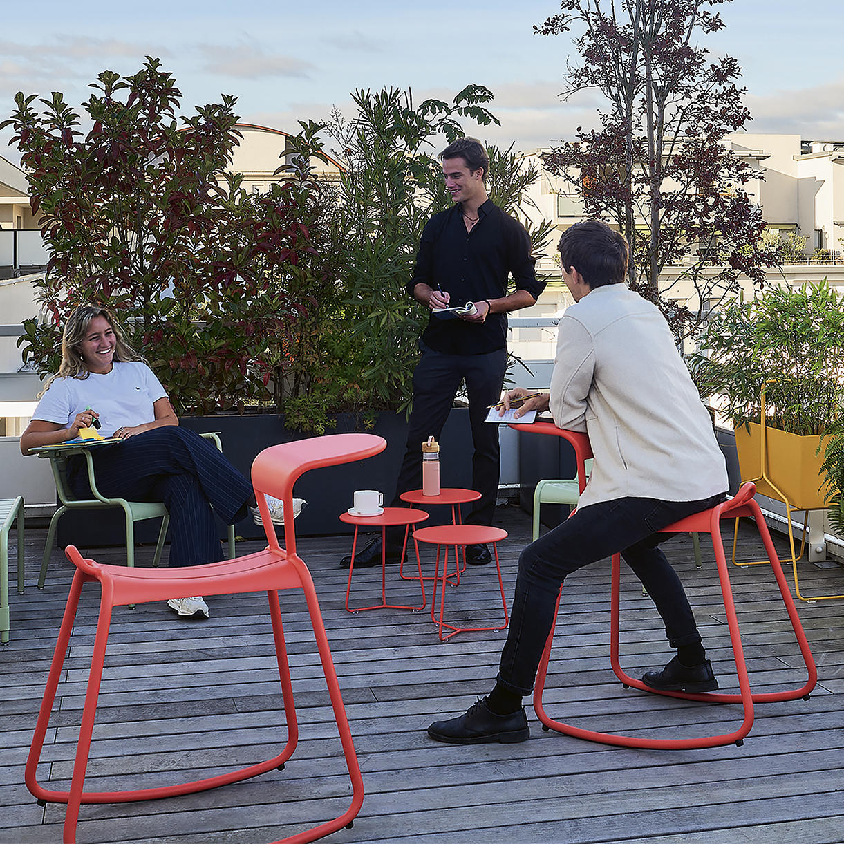 The Adadesk rocking chair by Fermob is a lighthearted twist on the rocking horse, it is a fun but practical desk for your outdoor office space.