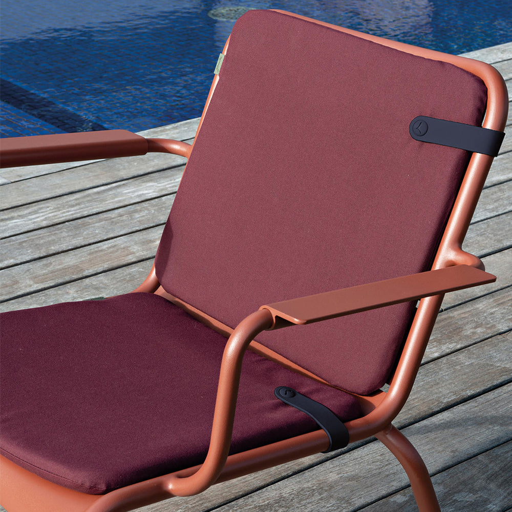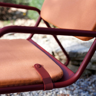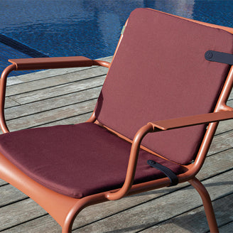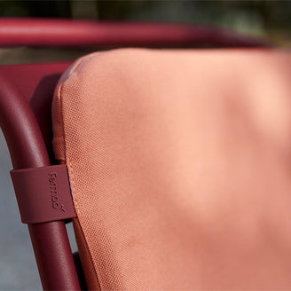 This colourful seat and back cushion set has been designed to give extra comfort to your Fermob Luxembourg lounge and low lounge chairs. The cushions are made in outdoor fabric, with a padded foam filling and a rubber clip. One cushion fits across the back of the lounge chair, whist the other cushion fits snuggly on the lounge chair seat.