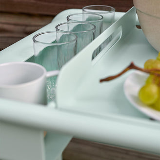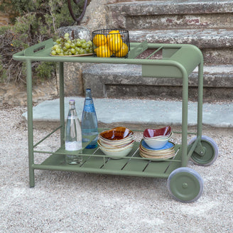 The side bar/trolley is perfect for outdoor dining for holding drinks or plates and glasses.