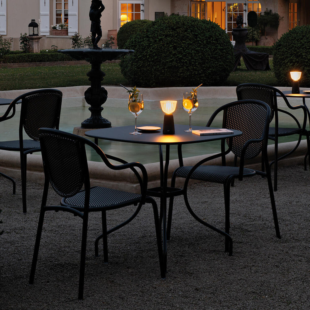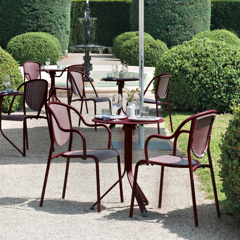Crafted from lightweight aluminium and a durable outdoor synthetic weave, the Parisienne chair is comfortable, well proportioned, and easy to move, ideal for cafes and bars.