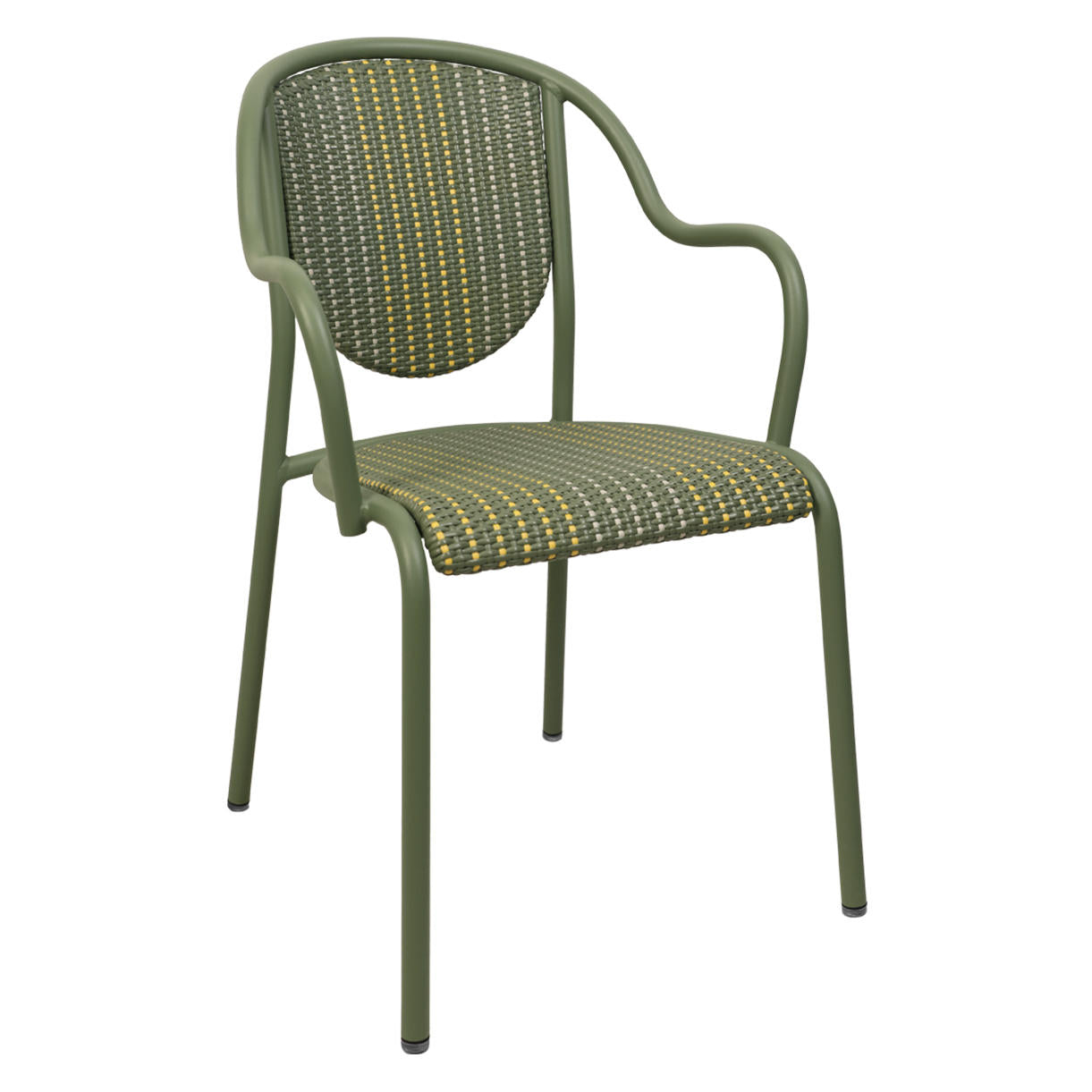 Crafted from lightweight aluminium and a durable outdoor synthetic weave, the Parisienne 21 Dining armchair in Lines Weave is comfortable, well proportioned, and easy to move, ideal for cafes and bars.