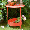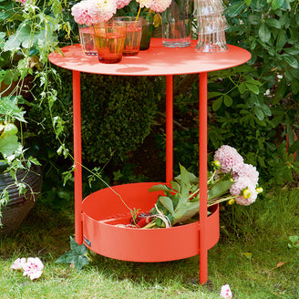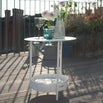 The side table is an elegant companion to your patio furniture, it can be used as a low table, a stand to hold flowers as it has drainage holes in the bottom shelf.