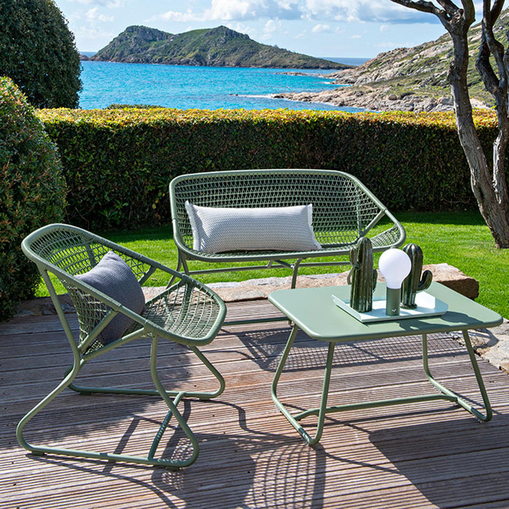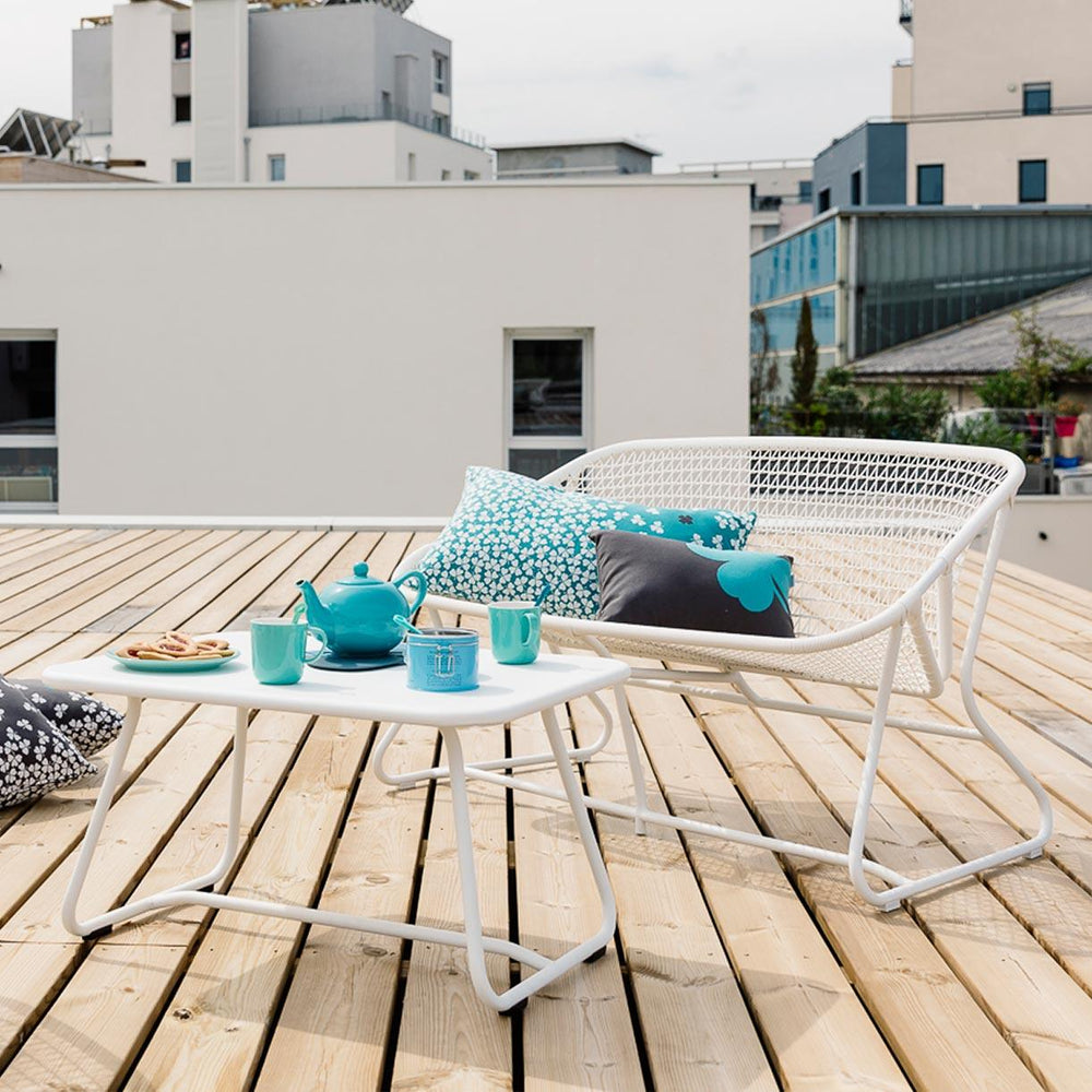 The Sixties collection embodies the Fermob style - young, fun and laid back. The aluminium frame with a woven seat and back, makes it light and easy to move around the garden.