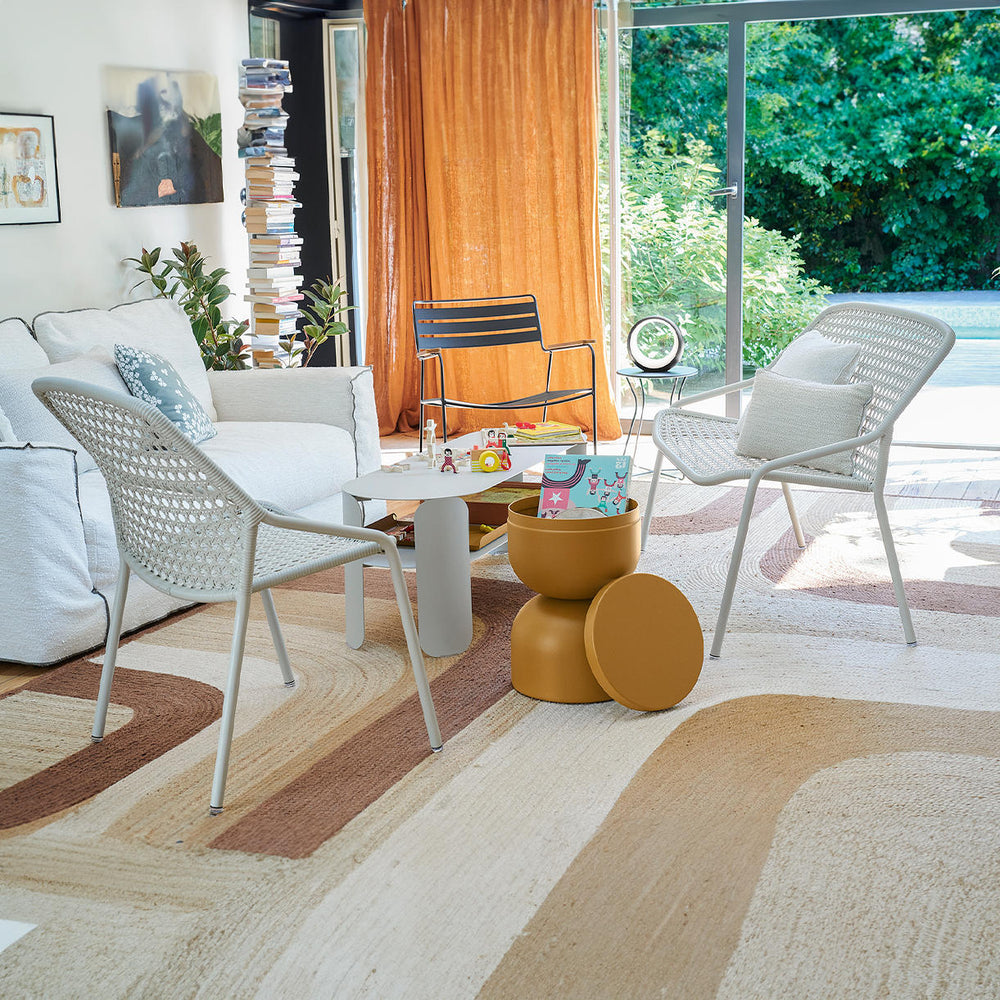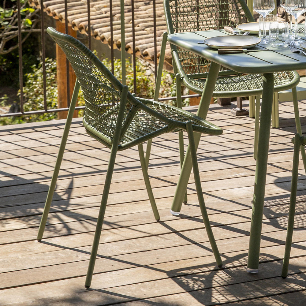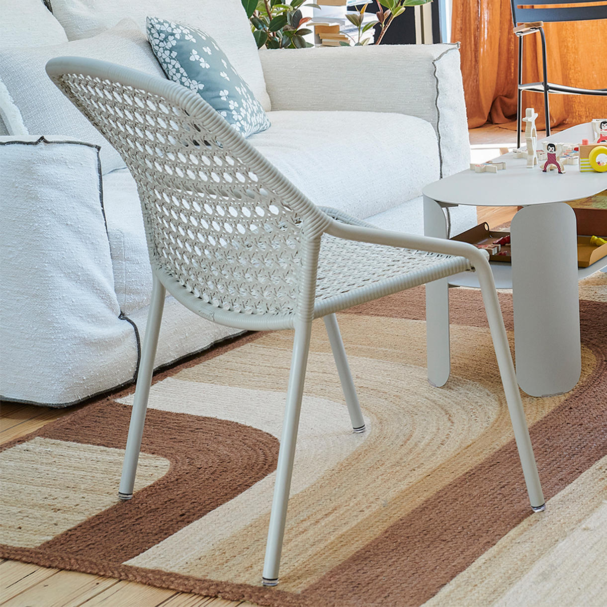 This stackable dining chair forms past of the Sixties collection embodies the Fermob style - young, fun and laid back. With a aluminium frame with a woven seat and back, the chair is light and easy to move around the garden.