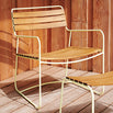 The combined Surprising Teak Low Armchair and footrest is made from flexible steel with teak slatted seat and back rest, offering a real level of comfort. The footrest slides under the armchair with ease, making it easy to store away.