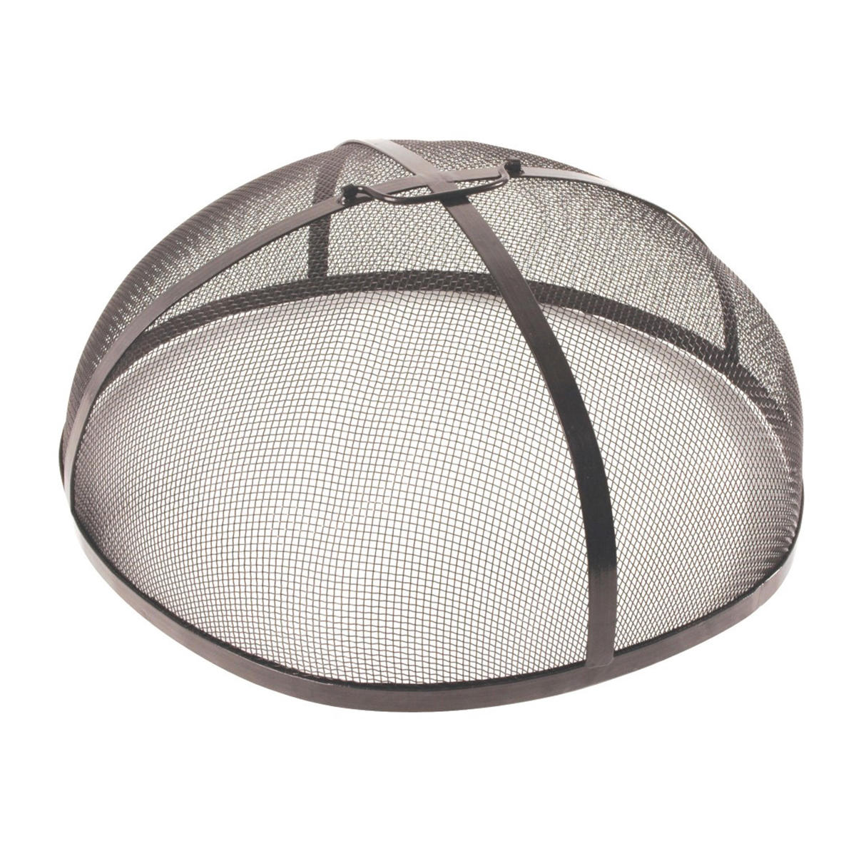 When this spark guard is placed over a fire bowl, it prevents spitting embers and sparks.