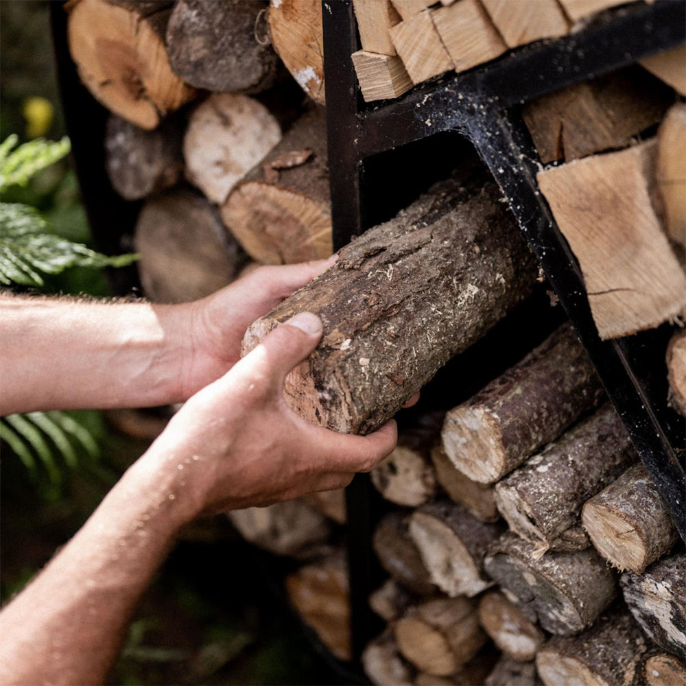 The dividing style of the design allows storage of large logs through to smaller pieces of kindling wood.