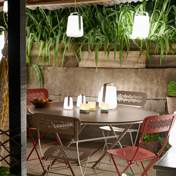 Sturdy outdoor tables with folding legs that enable them to fold flat for easy storage. They range in sizes from small balcony or side tables up to large 8 seaters. Complemented by a range of folding chairs.