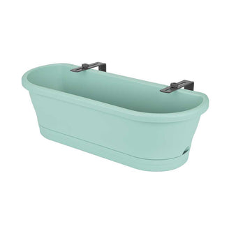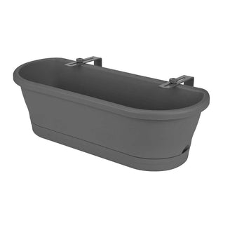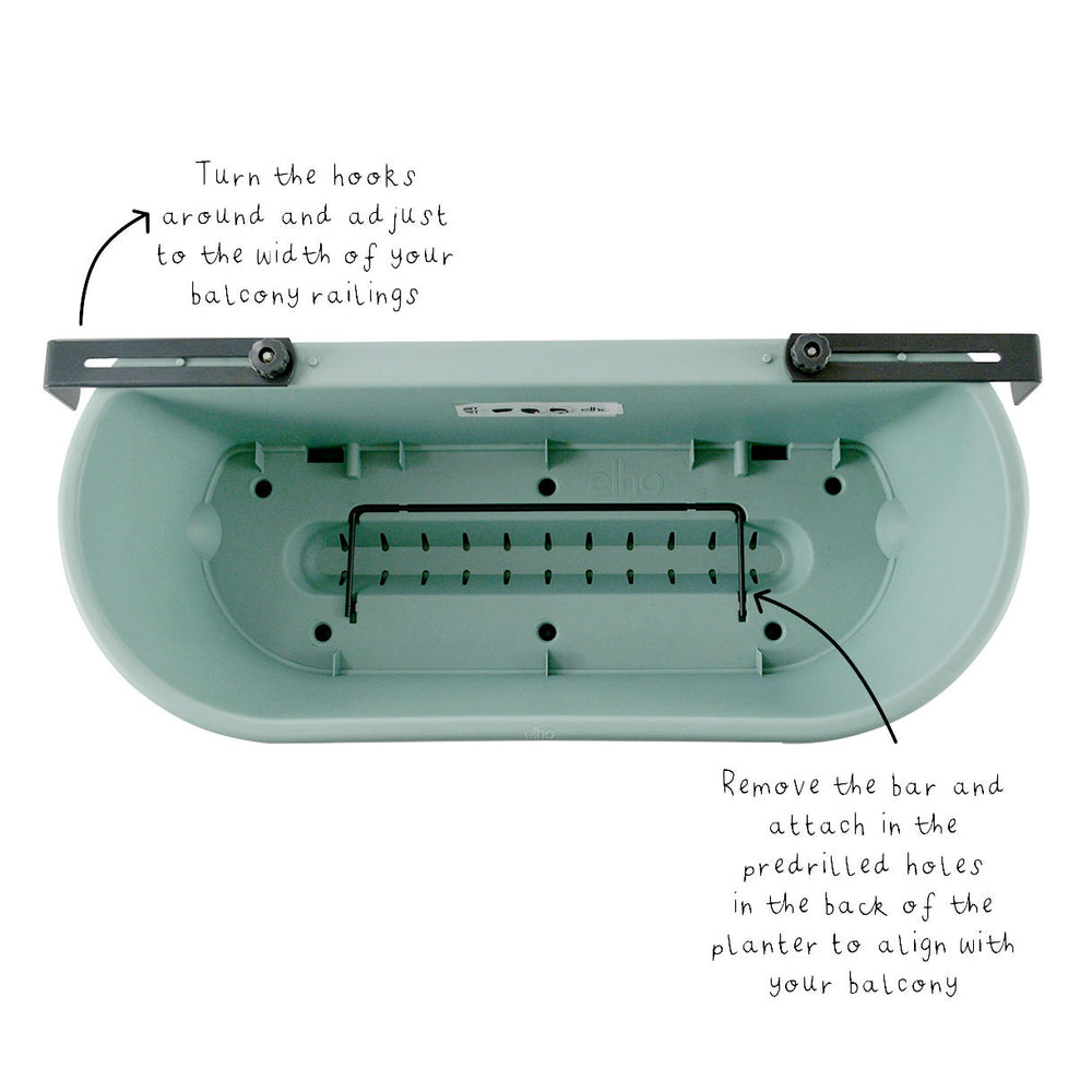 The strong and solid metal hooks are integrated in the design of the balcony planter itself. The width of the hooks can be extended to different size of balcony railings.