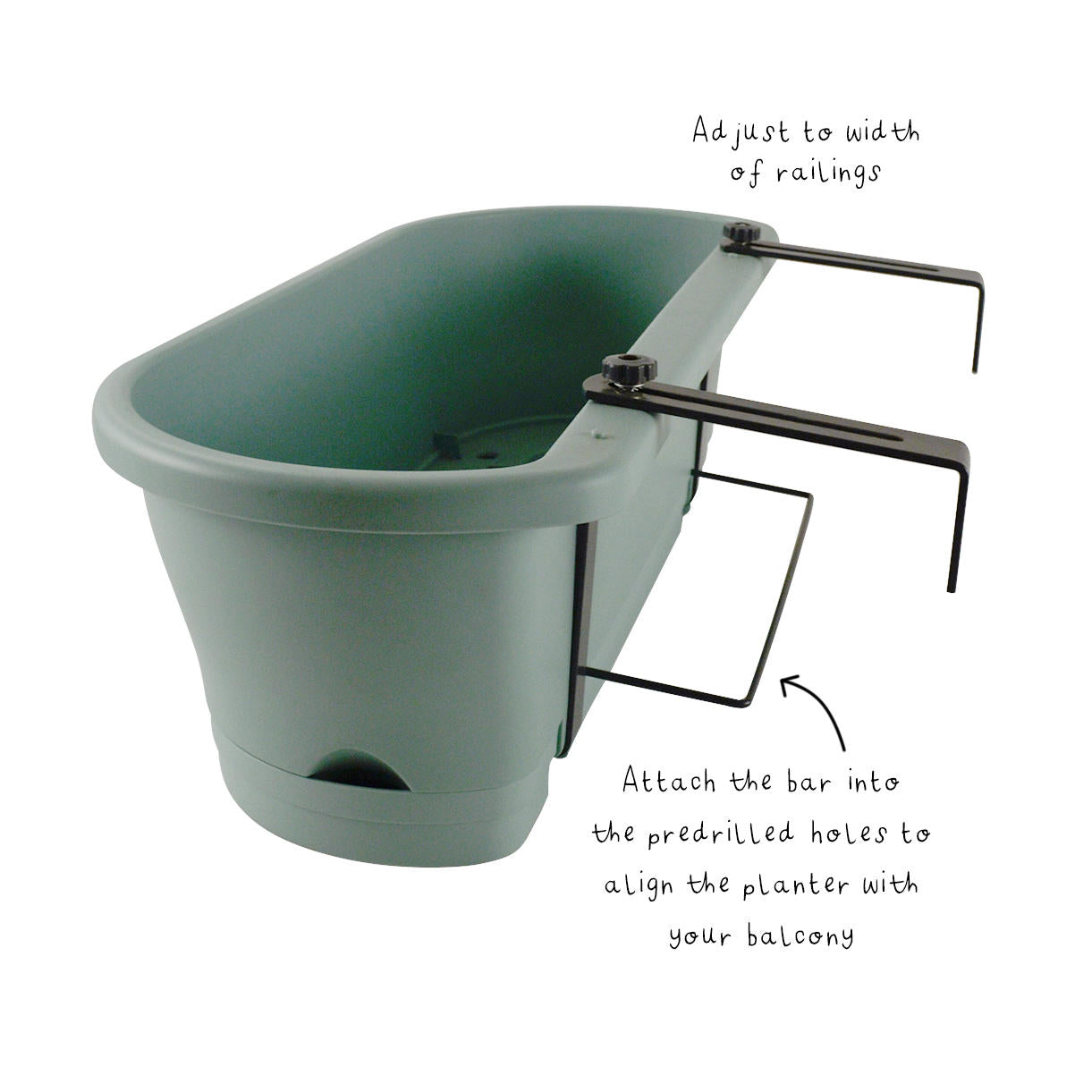 This strong, adjustable balcony planter is the perfect solution for balconies with railings up to 6cm wide.