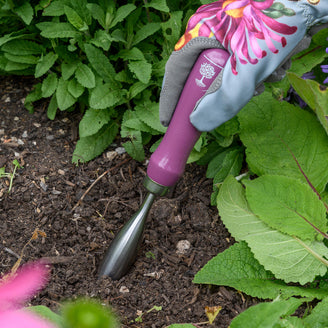The heart shaped trowel is ideal for shallower digging. The wide head moves soil quickly and easily, and the pointed sharpened tip slices smoothly through ground. The dibber is a practical companion to the trowel for bulb planting.