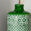 This flagon vase captures the essence of the Southern Mediterranean with its glazed vintage Moorish pattern. Reminiscent of containers found in the Southern Mediterranean where they were used to hold oil or wine.