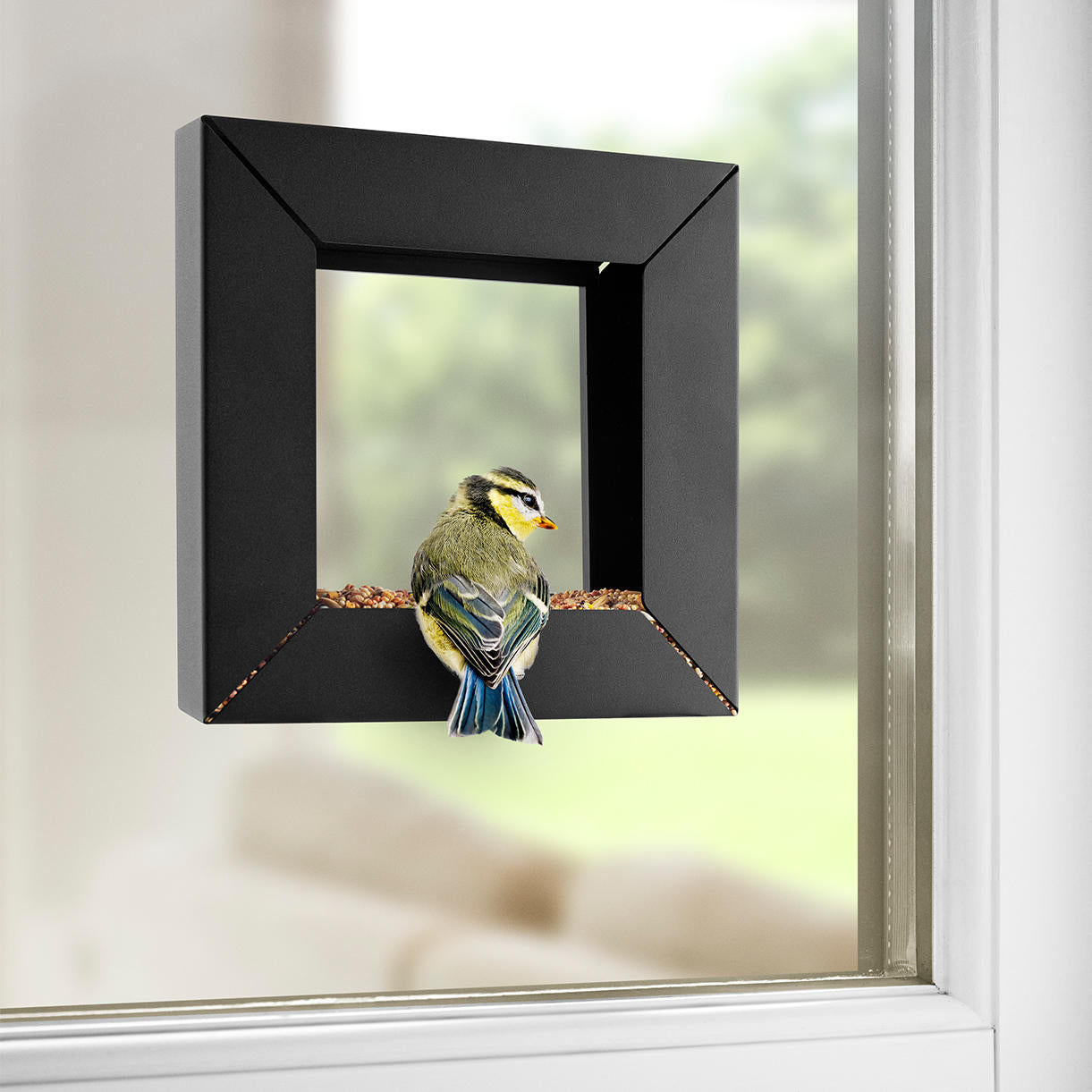 The cutout picture frame style allows the birds to be watched feeding from the other side of the window.