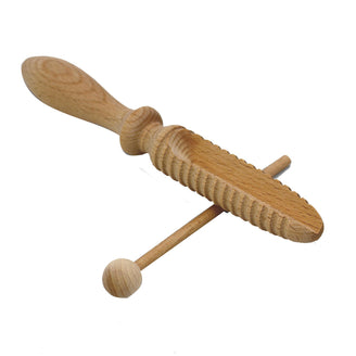 Rubbing the stick and ball on the ribbed chute to makes the chute vibrate and controls the flow of small and medium size seeds as you sow them into your seed tray.