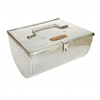 This small stainless steel roasting oven enables you to cook vegetables such as sweet potatoes, carrots and onions in the embers of your Kadai. It is shown here with a small poussin but is also perfect to cook small fish fillets stuffed with lemon and herbs.