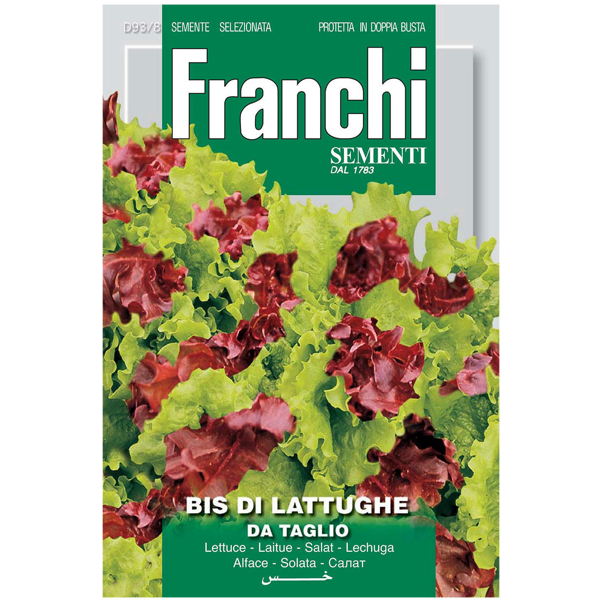 An attractive cut and come again lettuce with attractive red and lime green leaves.