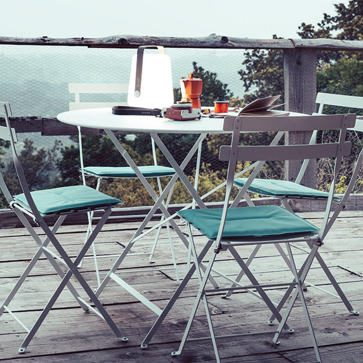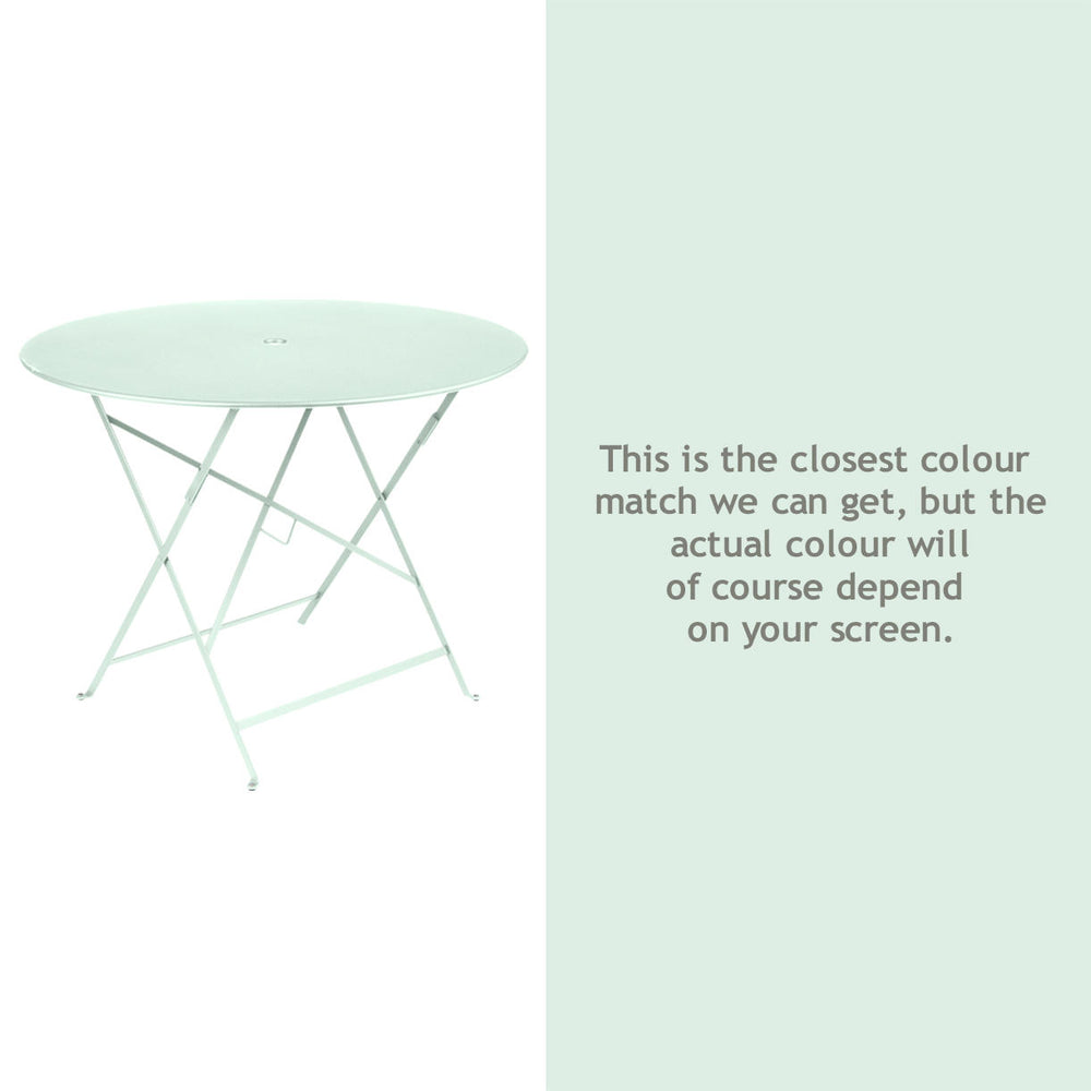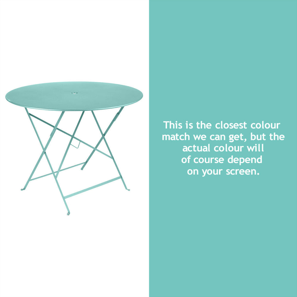 Made in France using premiere grade steel, with an anti-rust treatment and 100% UV resistant polyester powder coating which means the great colours won't fade. Bistro Chairs work perfectly with this table.