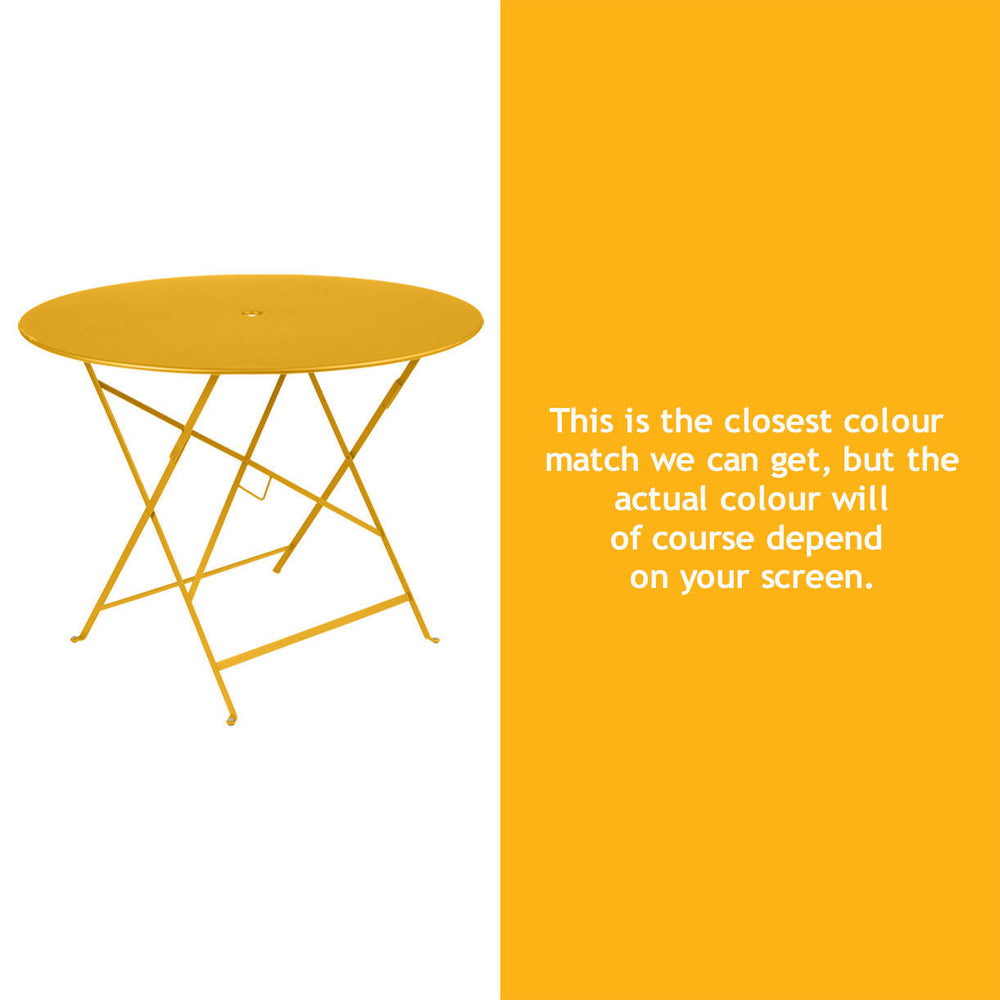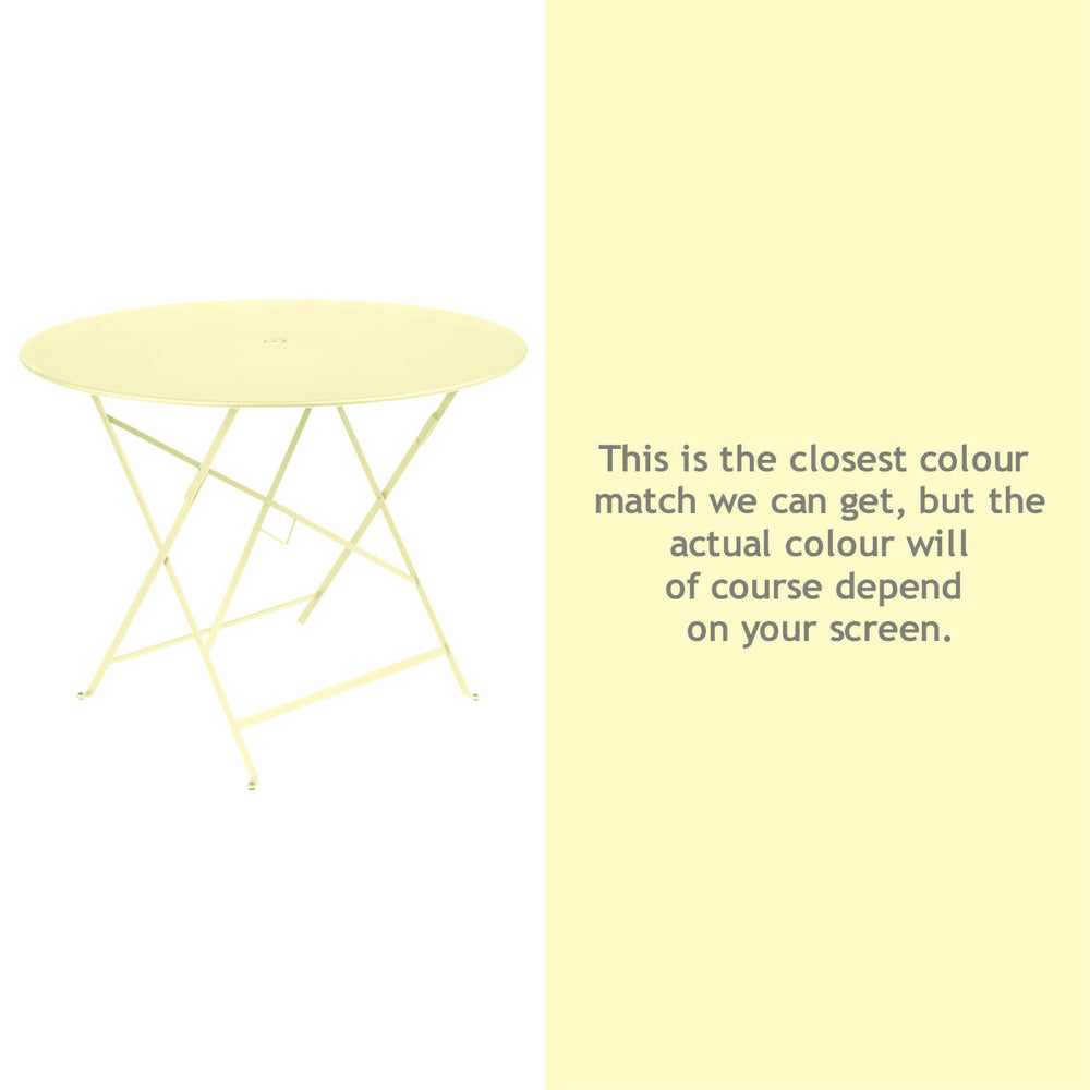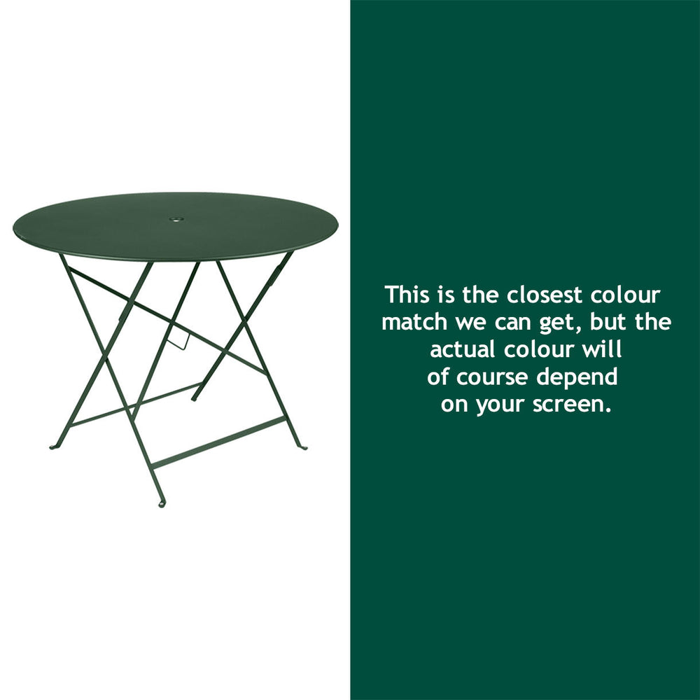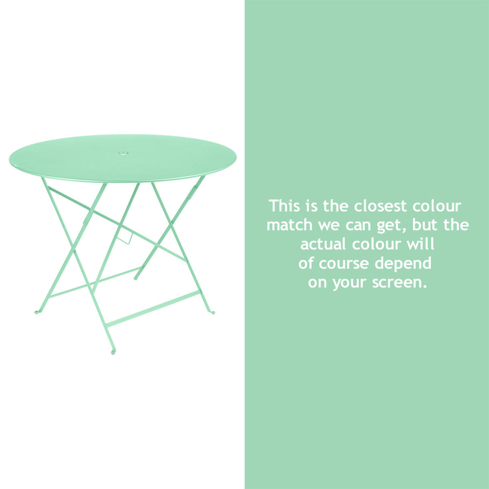 Made in France using premiere grade steel, with an anti-rust treatment and 100% UV resistant polyester powder coating which means the great colours won't fade. Bistro Chairs work perfectly with this table.