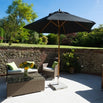 The parasol bases will need to be ordered separately - see here. We recommend the minimum base weight for this size of parasol is 25kg.