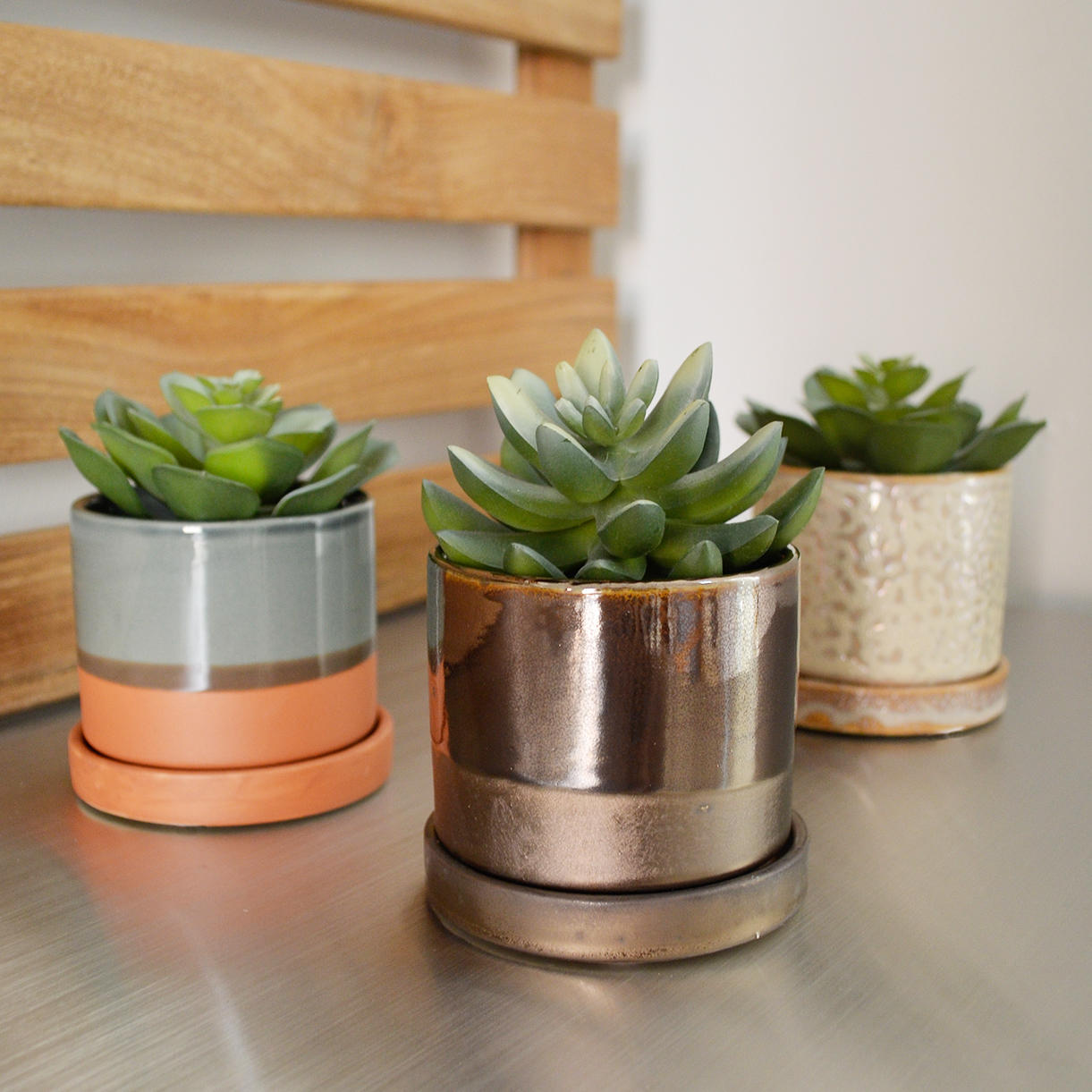 These mini plant pots are perfect for the smallest of plants. Each planter has a small matching saucer to catch any drips.