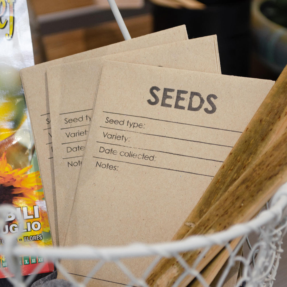 Seed storage envelopes so you can save and store flower seeds to use in the following years, or even share edible flower seeds with other culinary cottage garden lovers.