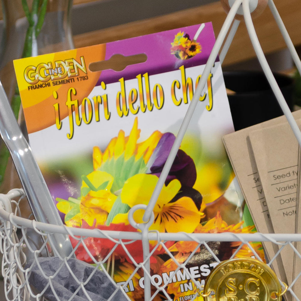 A delightful gift for both culinary and cottage garden lovers alike contains everything you need to grow and harvest edible flowers for the kitchen.
