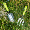 The fluorescent yellow handles of this hand trowel will show up in any foliage, making it pretty difficult to lose them in the undergrowth.