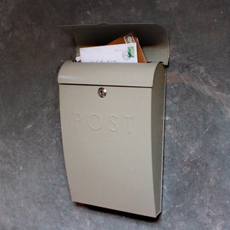 Lockable Post Box made from powder coated steel in a soft clay colour.