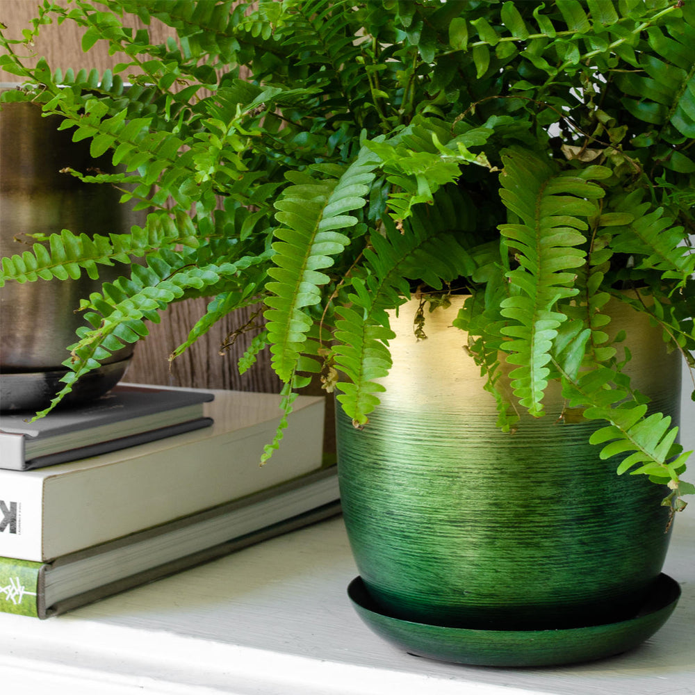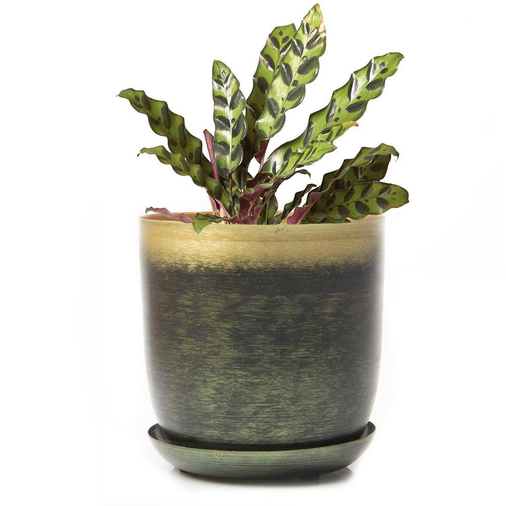 This gorgeous plant pot with its lustre finished glaze has its own matching saucer, preventing unsightly drips on the window sills or tables tops.