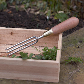 With stainless steel prongs, solid brass ferrule, and a gorgeous natural FSC waxed beech wood handle, that will over time mould to the shape of your hand.