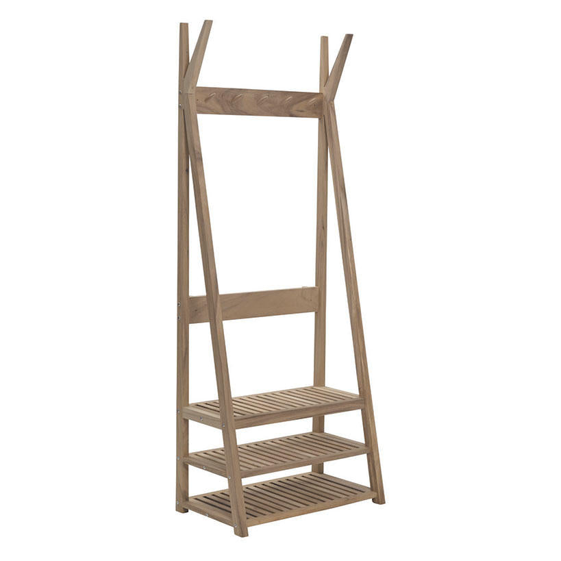 The coat stand has pegs to hang your coat on, slatted shelves for storage and the top shelf doubles as a versatile seat to perch on, whilst taking boots and shoes off.