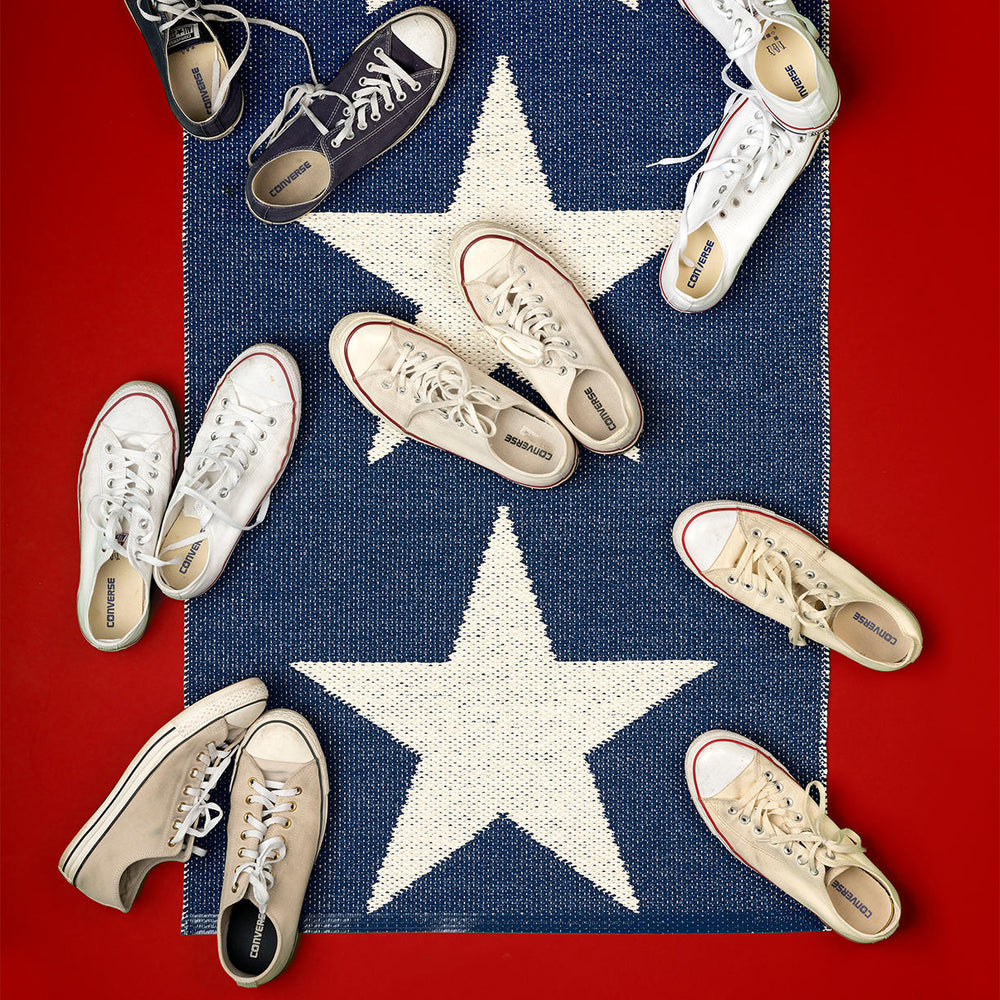 Made in Dalarna Sweden. Woven on a traditional loom using wooden shuttles, these outdoor rugs take the concept of the classic plastic rug to a whole new level.
