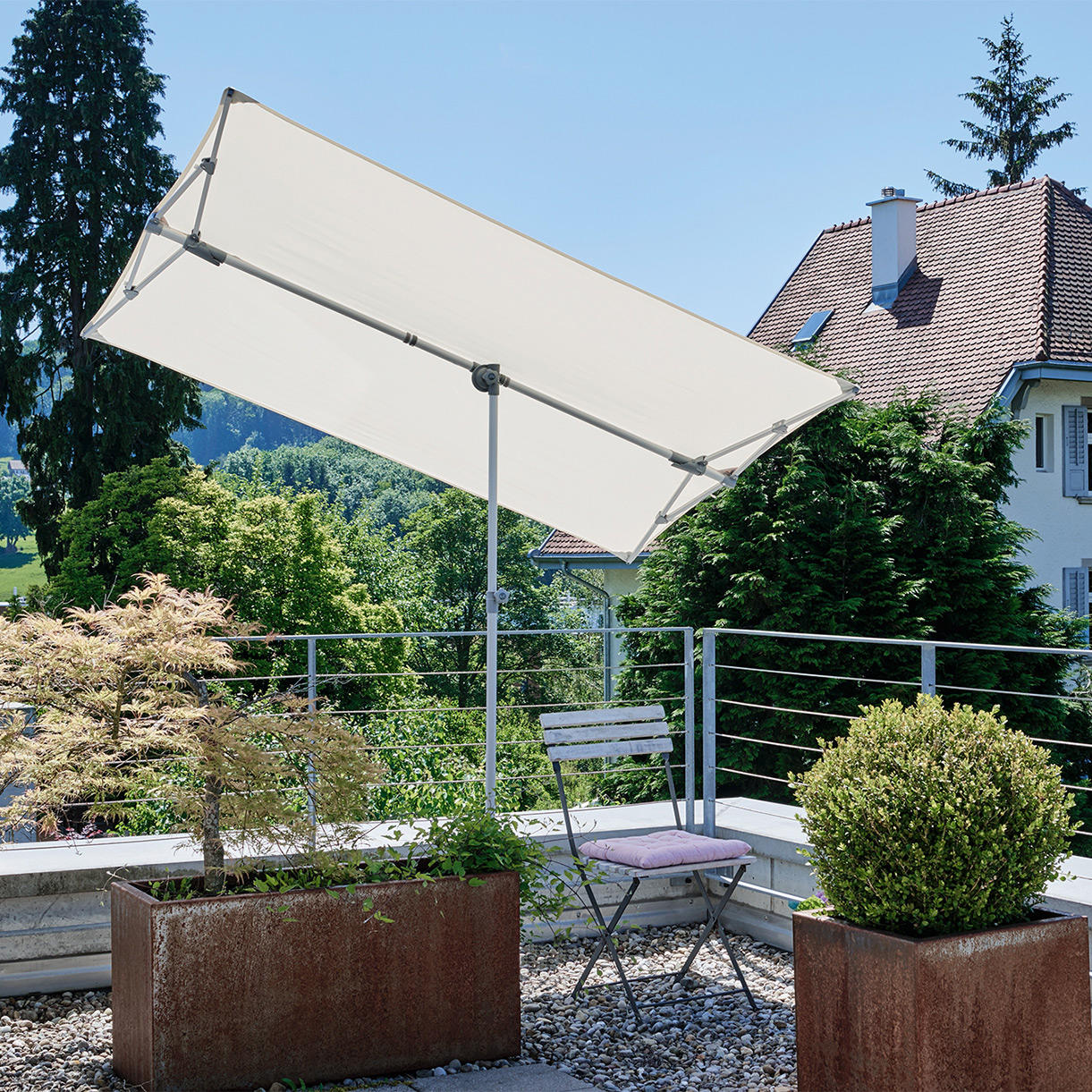 The Flex Roof Easy Parasol canopy tilts, turns and slides, allowing you to perfectly position your shade; the ideal solution to the moving sun. You no longer have to move your chairs into the shade, simply adjust the canopy angle and height. The canopy can also be positioned vertically, acting as a screen to give you privacy in your outdoor space.