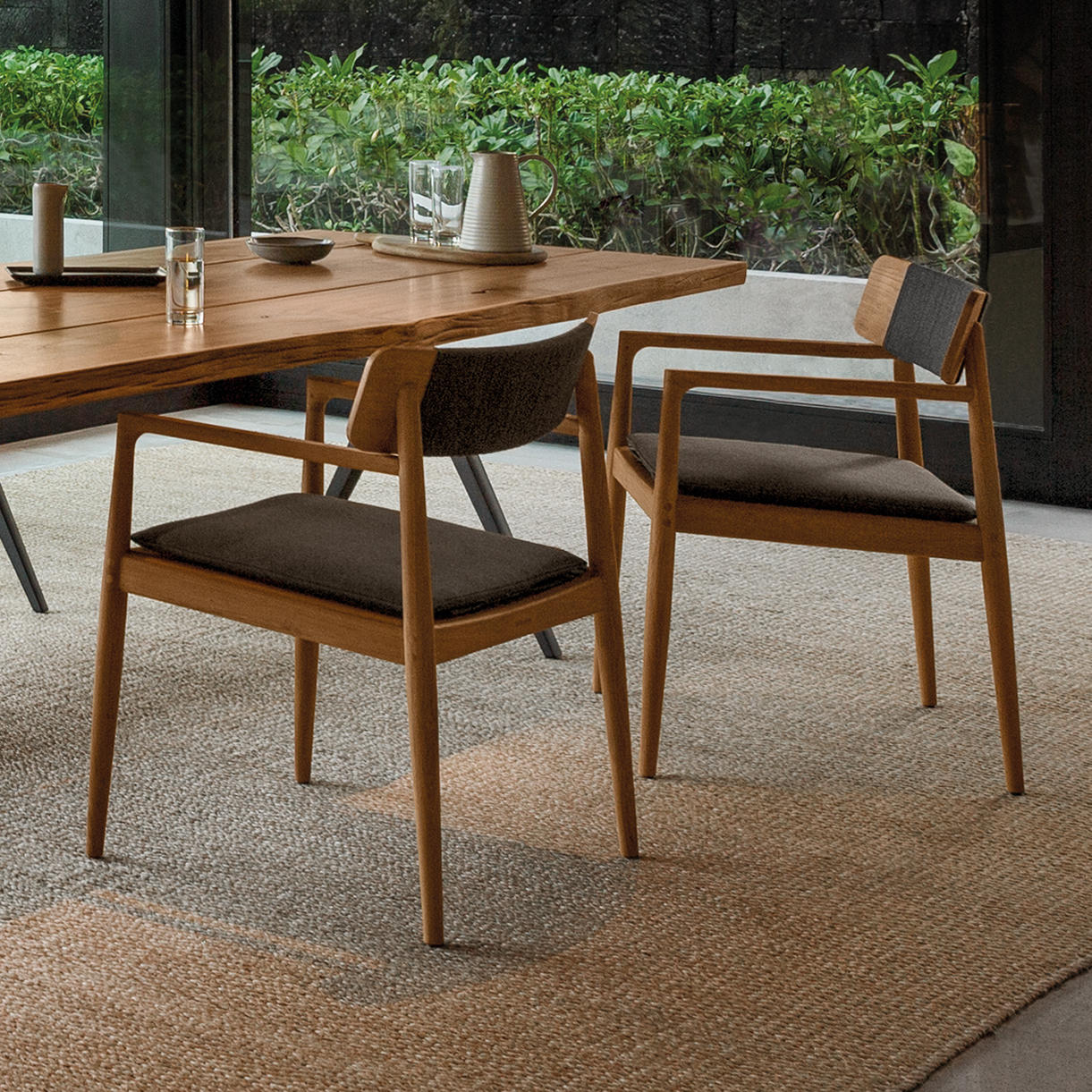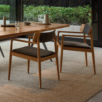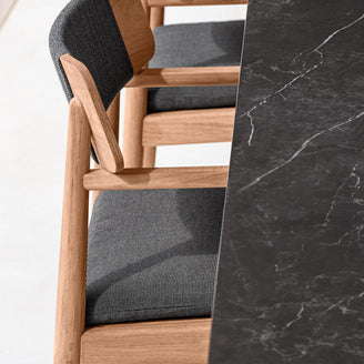 Comfortable and elegant, the Archi dining chair is made from natural teak, with all weather outdoor rope detailing on the back rest.