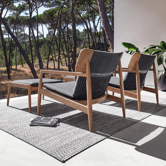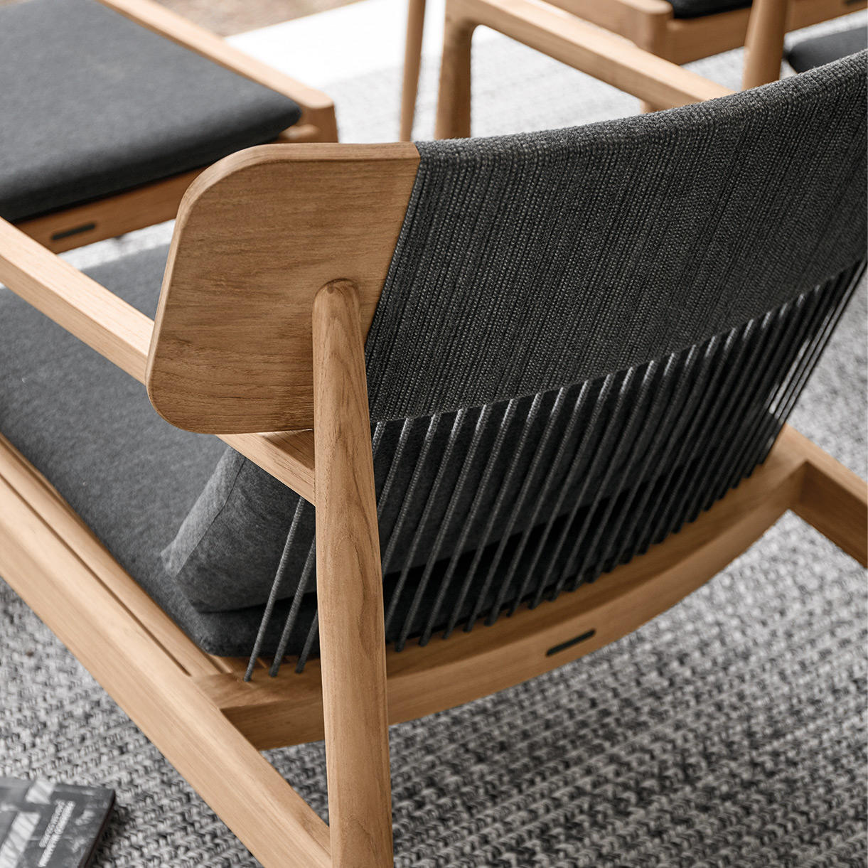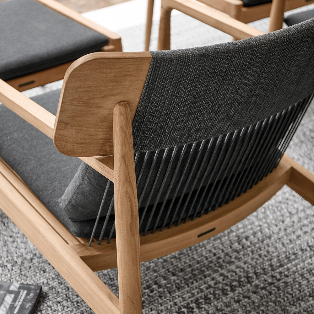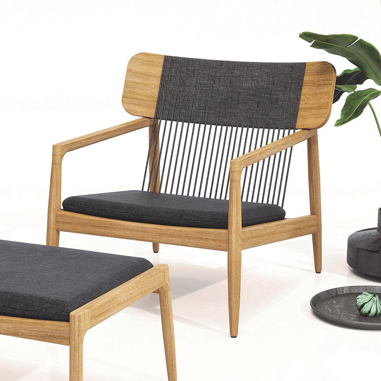 Comfortable and elegant, the Archi Lounge chair is made from natural teak, with all weather outdoor rope detailing on the back rest.
