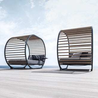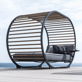 Cradle Daybed is luxurious for one to relax and lounge in, but big enough for two to spend a lazy, tranquil afternoon in. With a powder-coated aluminium frame in dark meteor or white, with soft-touch cushions, the Cradle is as elegant as it is comfortable.