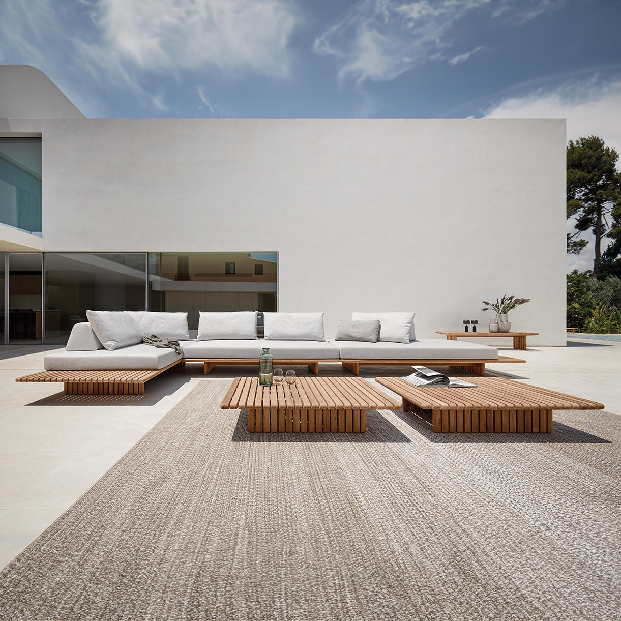 Crafted from the finest plantation teak, the Modular Deck Ottoman boast a refined elegance that transcends ordinary design. Deck is inspired by the sleek teak decking found on the most prestigious sailing vessels of bygone eras.