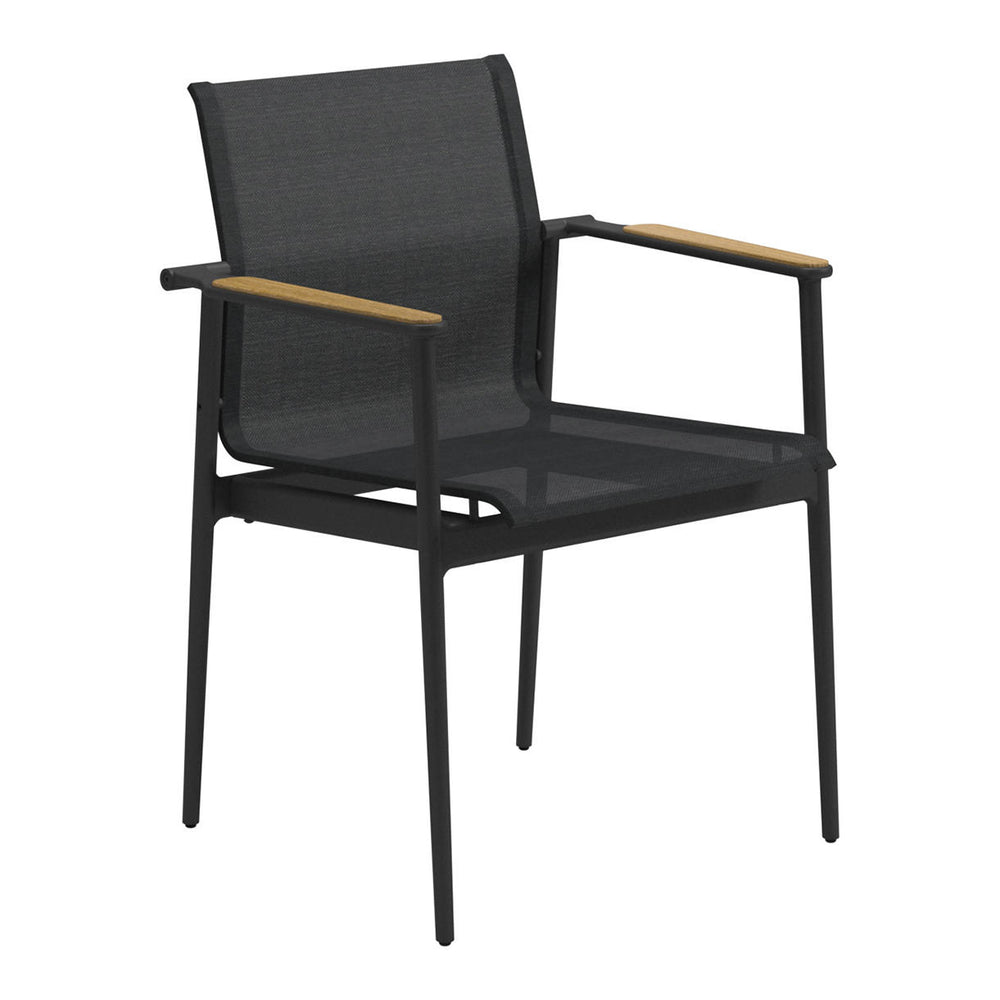 The 180 stacking outdoor armchairs are manufactured from light weight aluminium which is a light and tough metal with an excellent strength and corrosion resistance, making it an ideal material for outdoor furniture and all weather outdoor sling fabric.