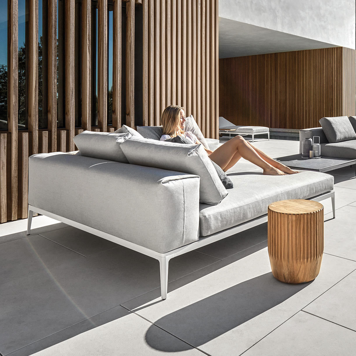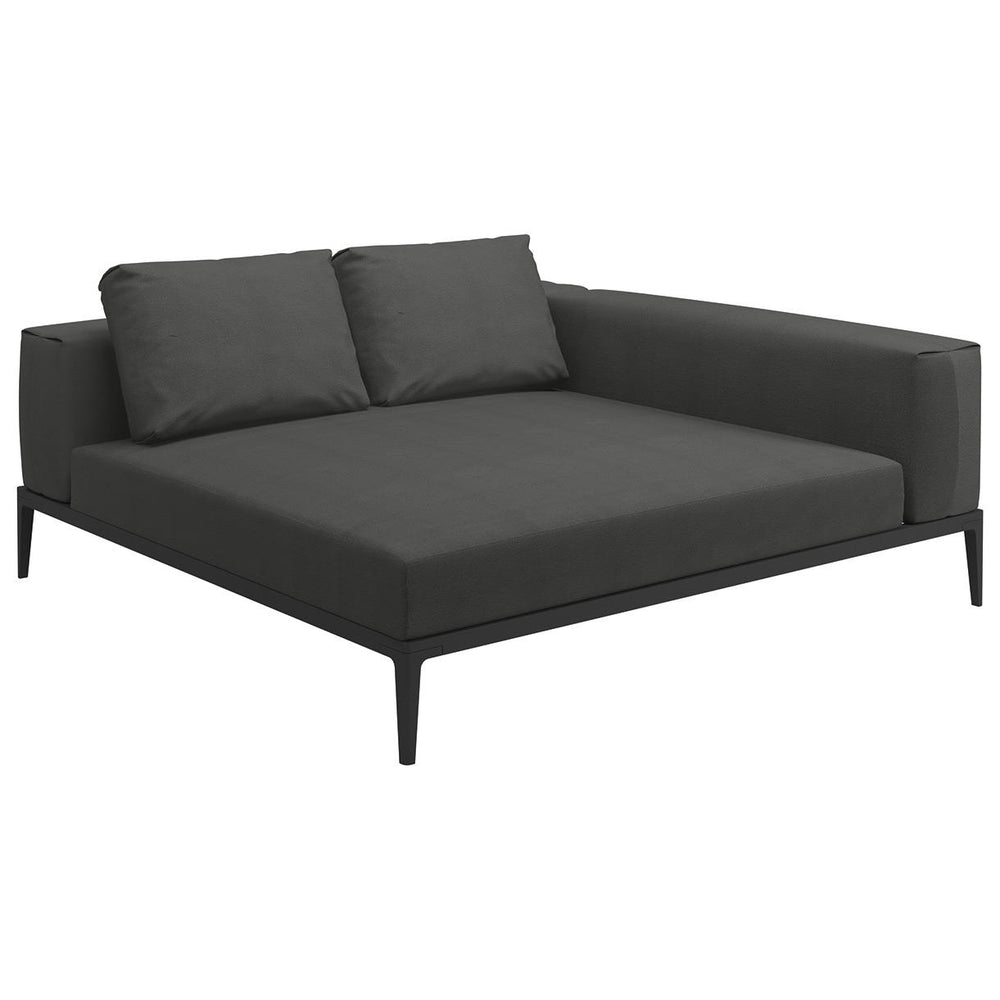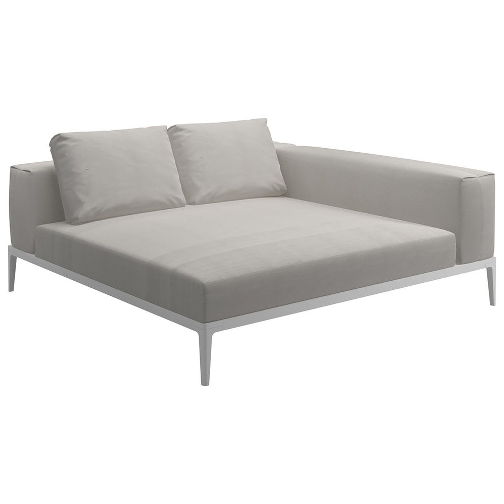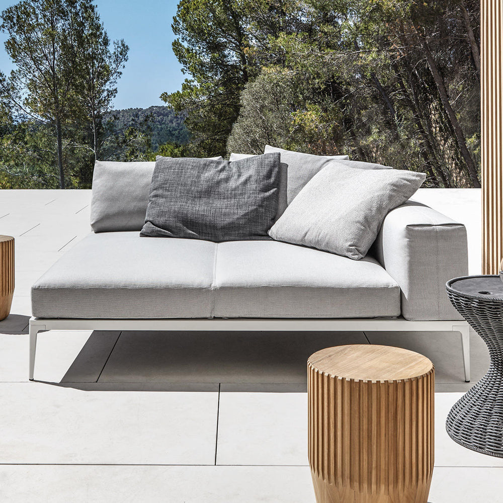Powder coated aluminium base frames are teamed with comfortable seat and back cushions making Grid by Gloster a versatile, modular outdoor lounge collection.