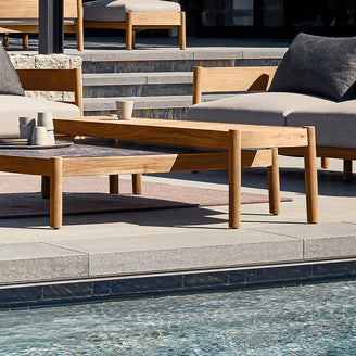 Designed to complement the Haven Outdoor Lounge by Gloster, the High Coffee table combines solid teak frames with either a classic teak top or a choice of smooth sleek ceramic surfaces.