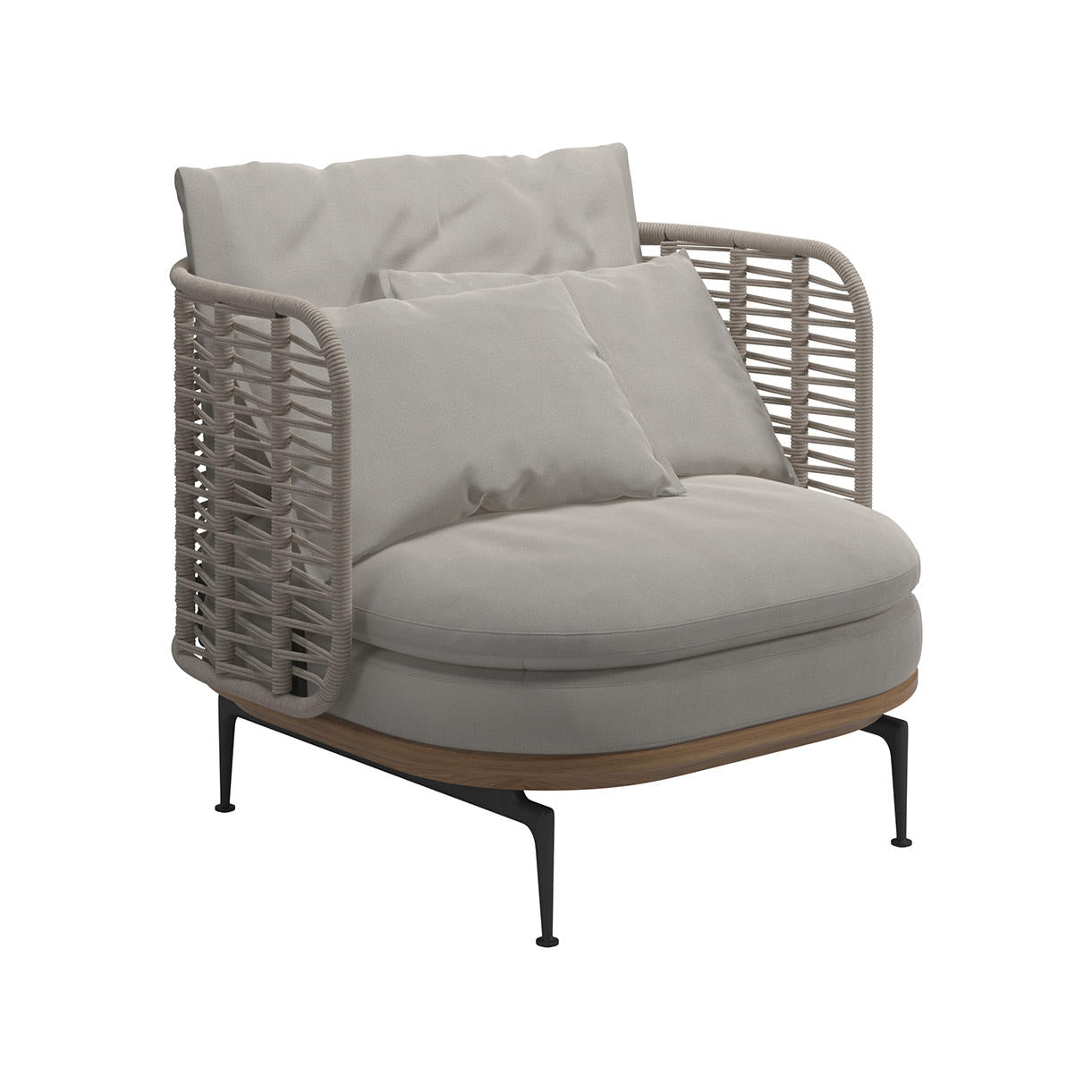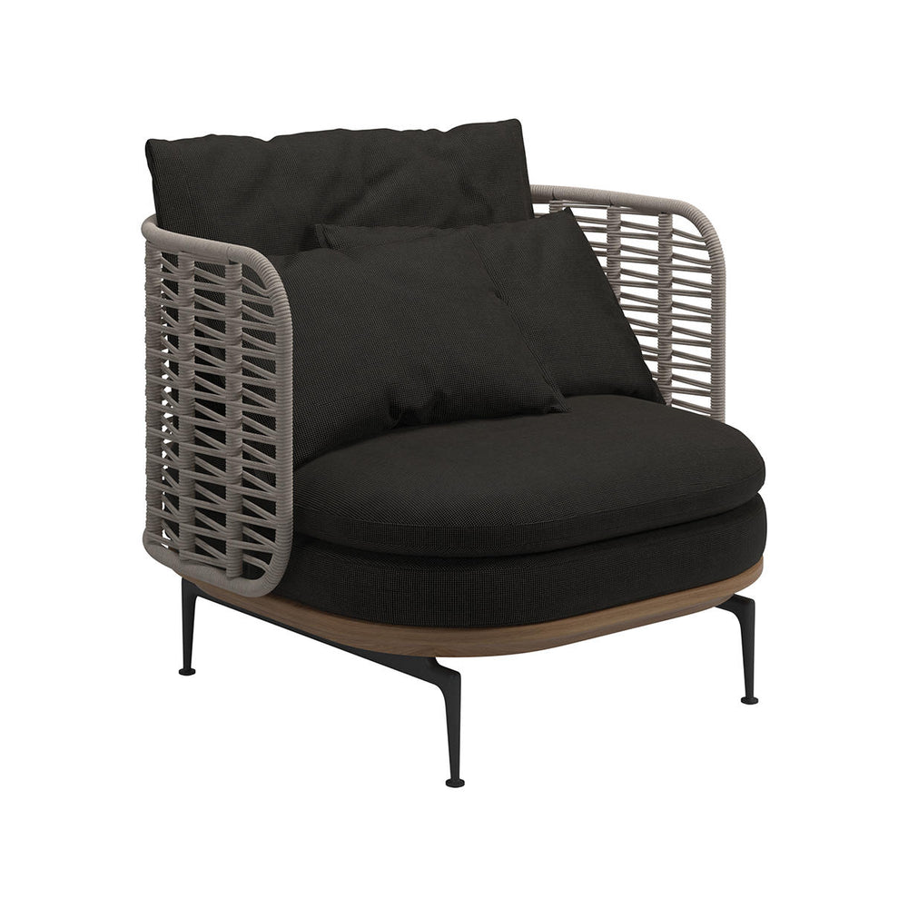 Complete with outdoor fabric seat, back cushion, and two scatter cushions, this Low Back lounge chair invites you to relax in comfort amidst nature's embrace.