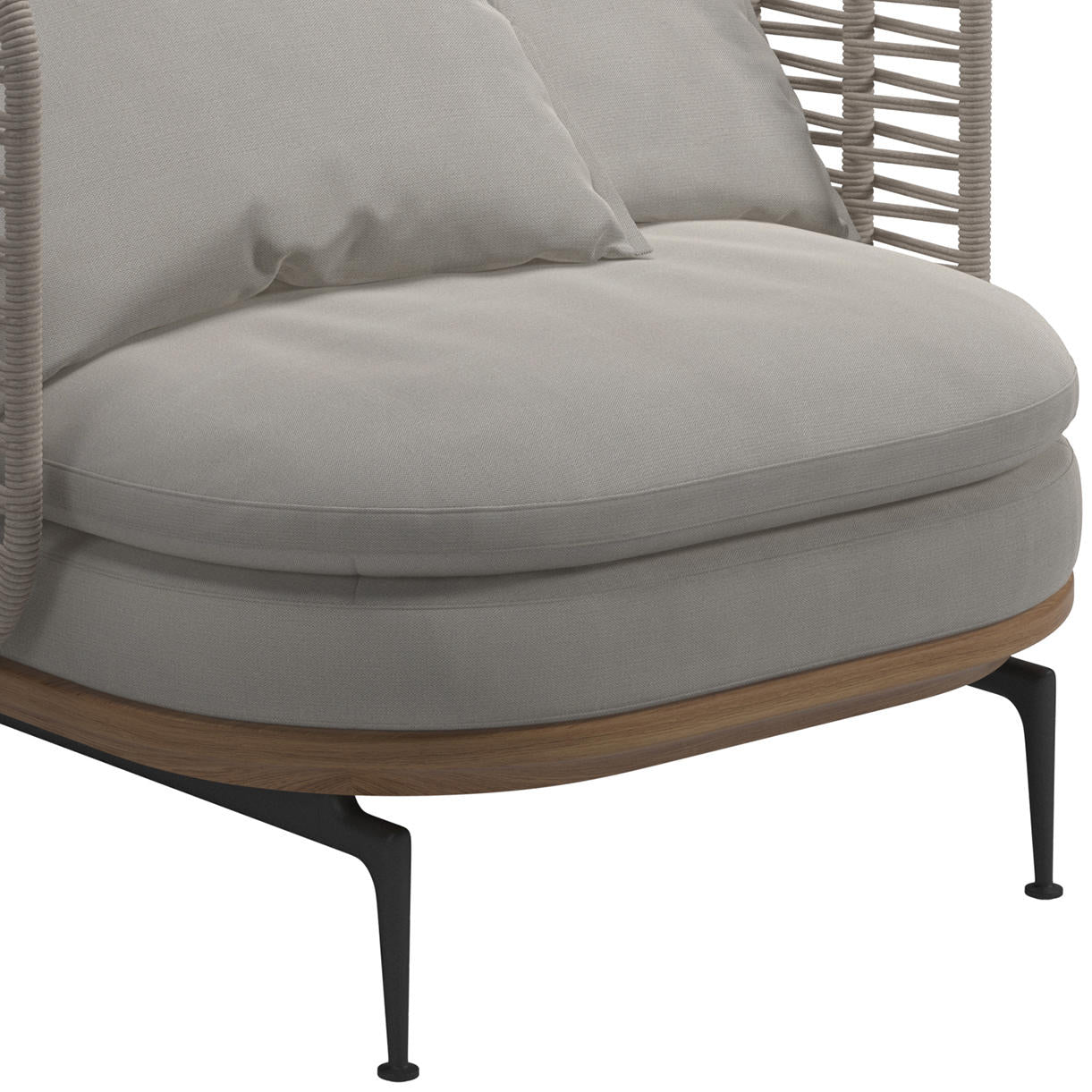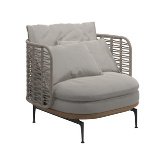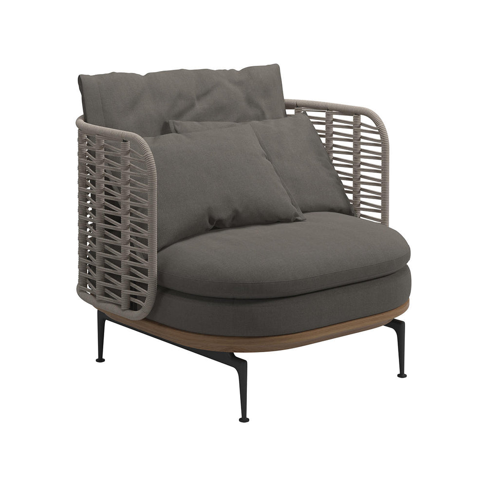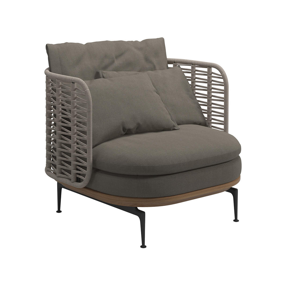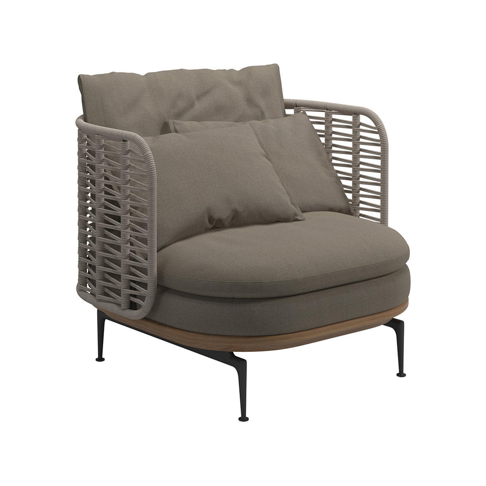 The Mistral outdoor low-backed lounge chair, is a distinguished piece within Gloster's Mistral furniture collection, inspired by the gentle winds of Southern France.