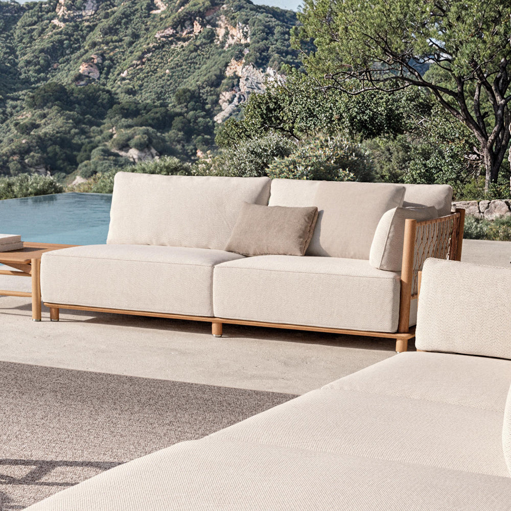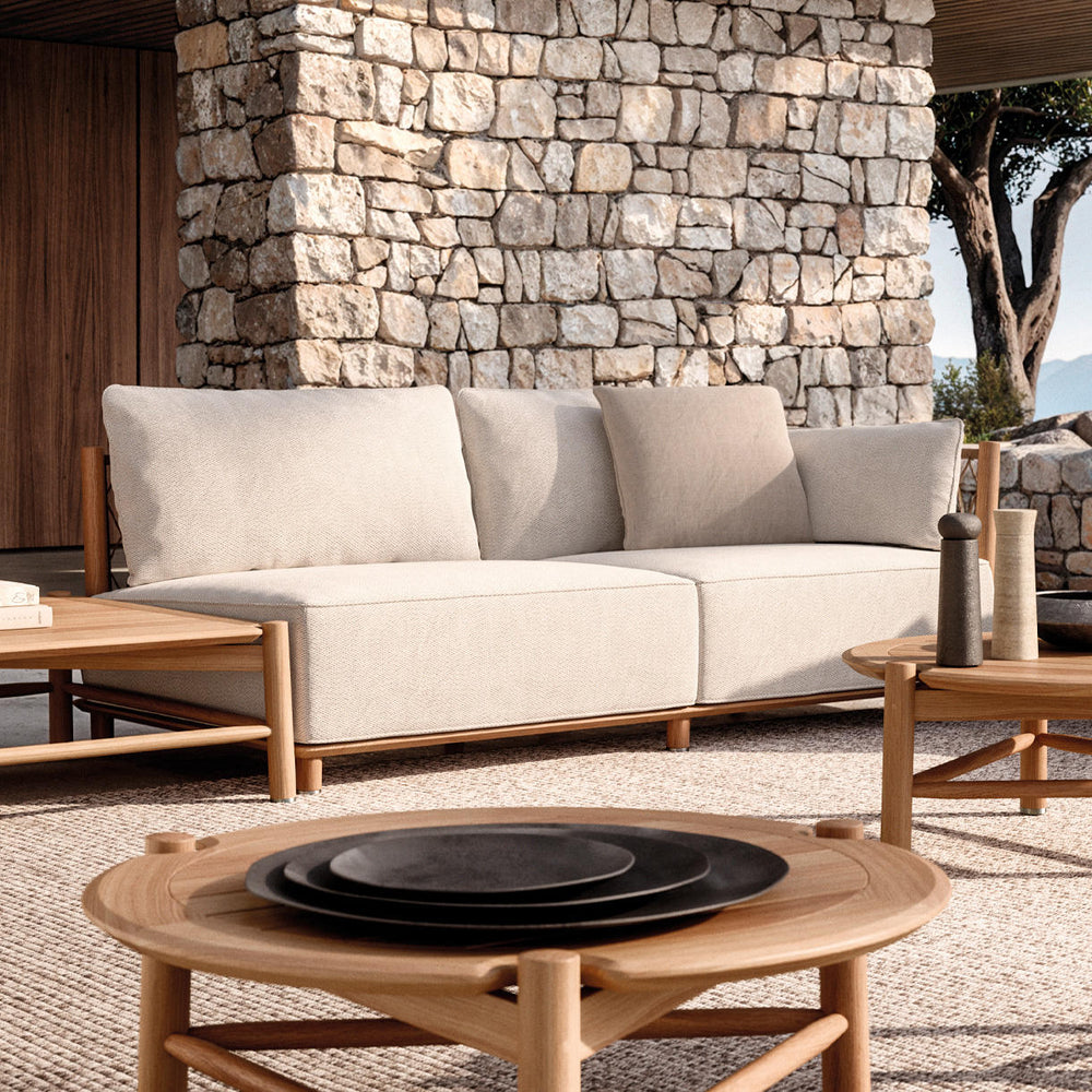 This relaxing Salina Right End Unit is perfect to complement your Salina outdoor modular lounge furniture. Made from solid natural teak and brushed stainless steel detail form the foundation, while woven all-weather wicker in a soft wheat tone adds texture and warmth.